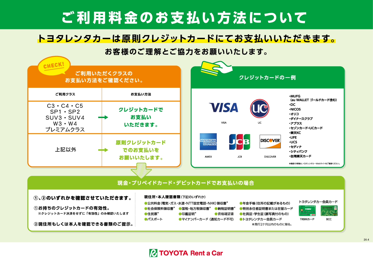 ※C3・C4・C5・SP1・SP2・W3・W4・SUV3・SUV4・プレミアムクラスのお支払いはクレジットに限らせていただきます。