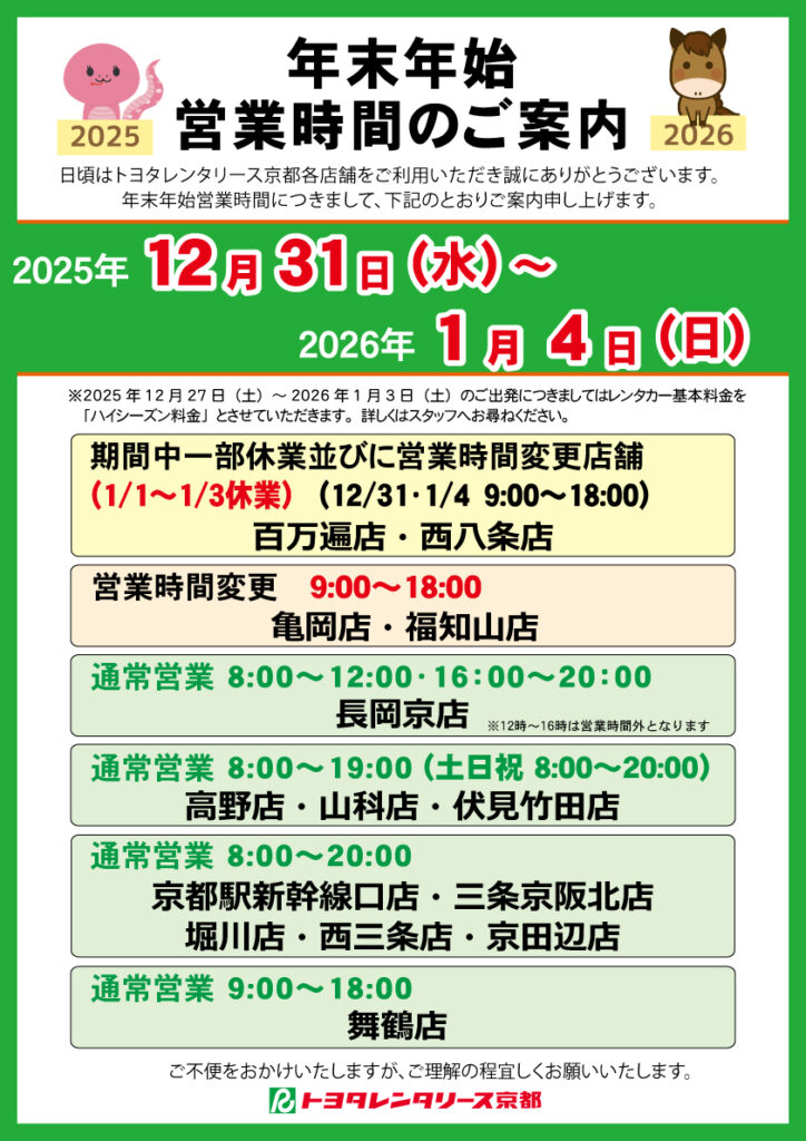 いつもトヨタレンタリース京都をご利用いただきありがとうございます。